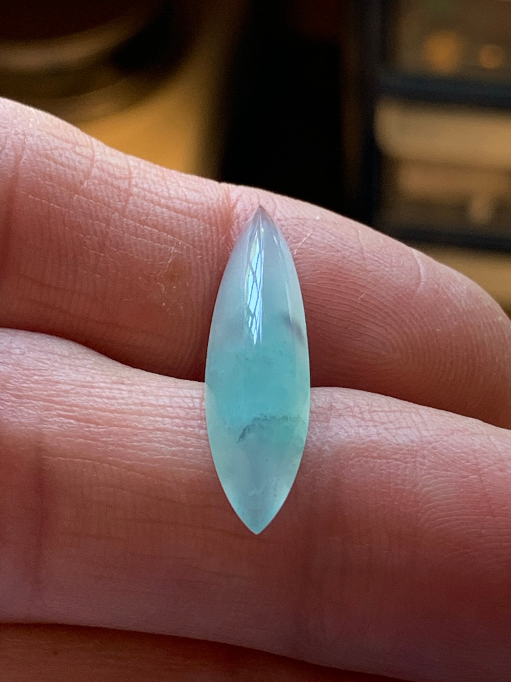 Aquaprase Chalcedony 6.43 ct Willow Leaf Cab 30.3 x 7.7 x 5.2