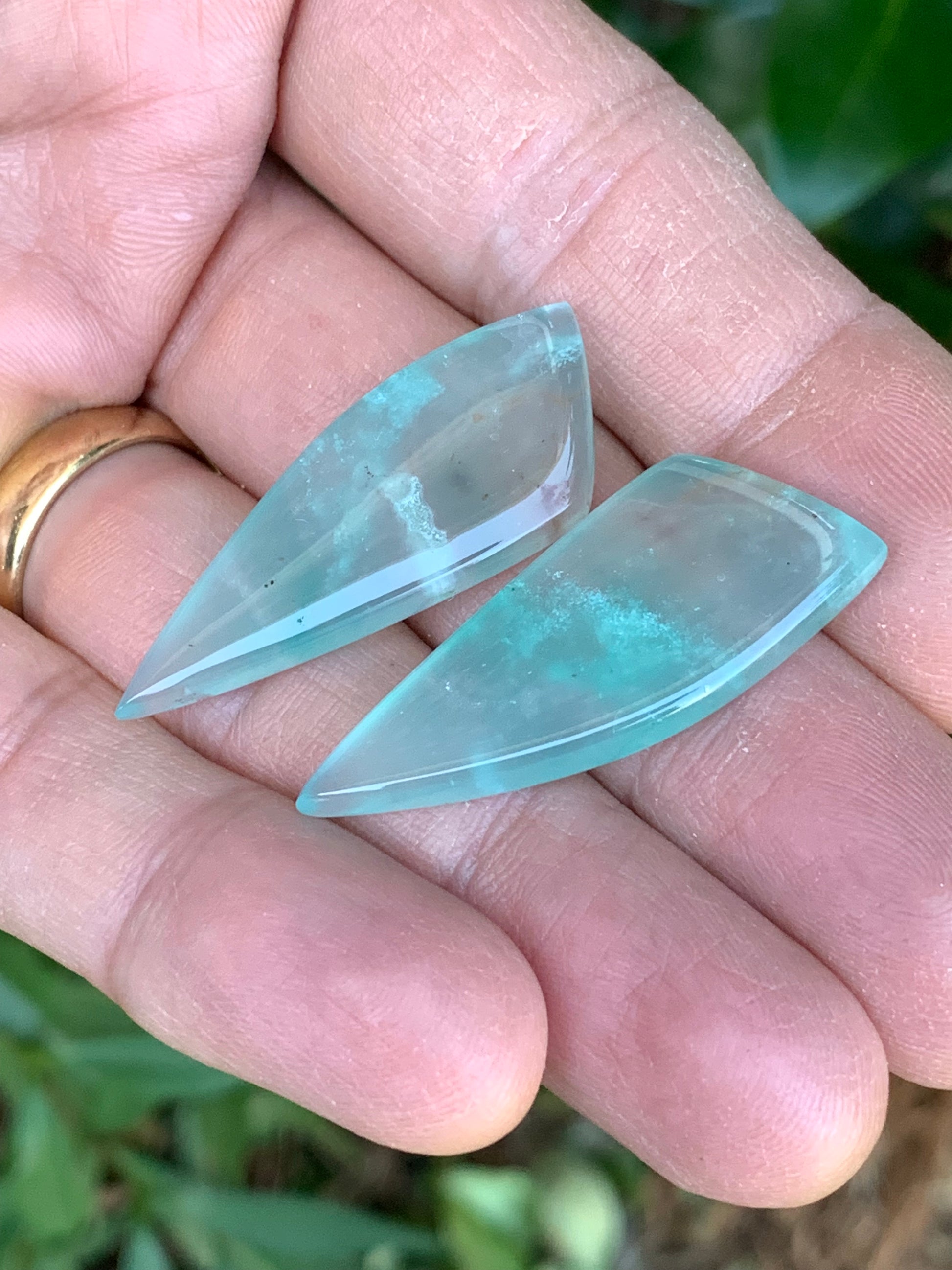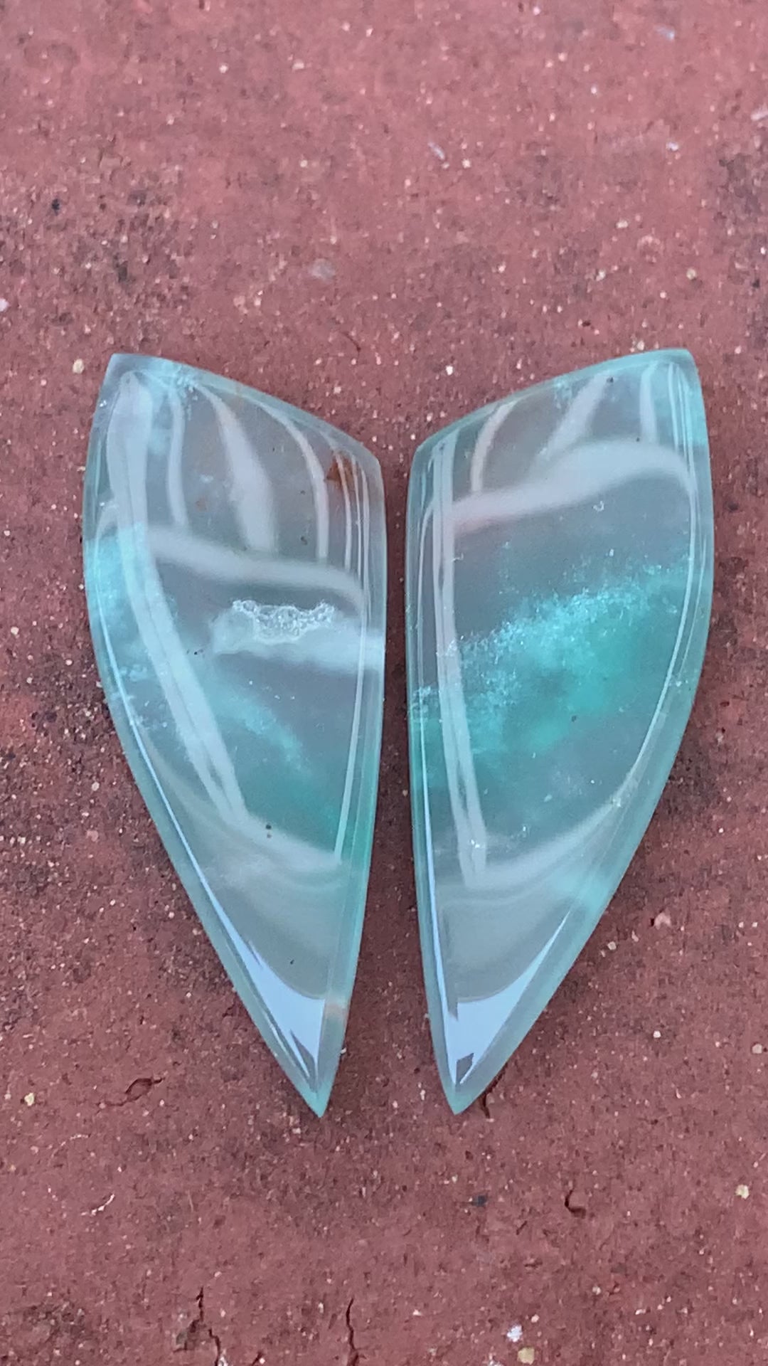 Aquaprase Chalcedony Pair 46.43 ctw Wing Cabochons 40.7 x 15.2 x 4.8